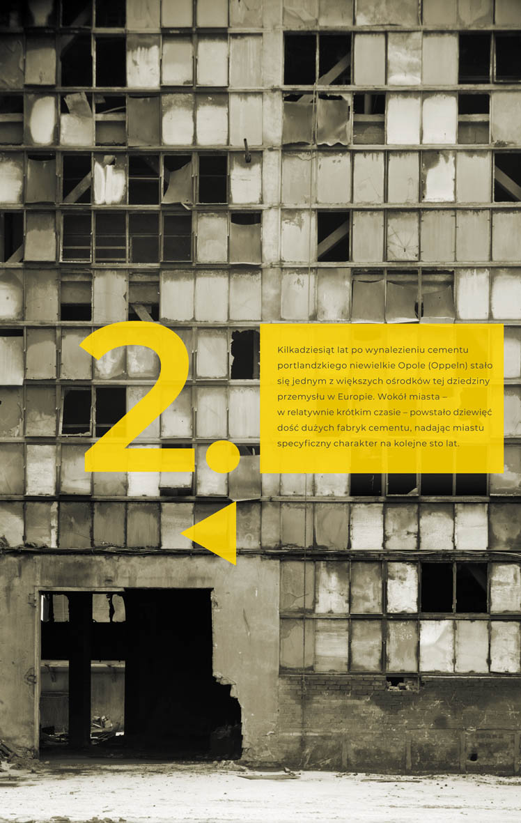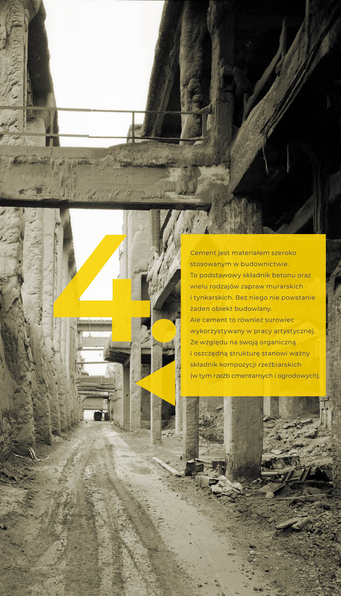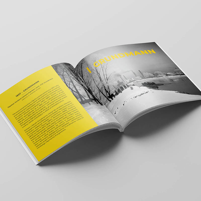 Za punkt wyjścia do koncepcji graficznej projektanci przyjęli kolorystykę – szarość jako kolor cementu oraz kolor uzupełniający, związany z przemysłem – żółty.